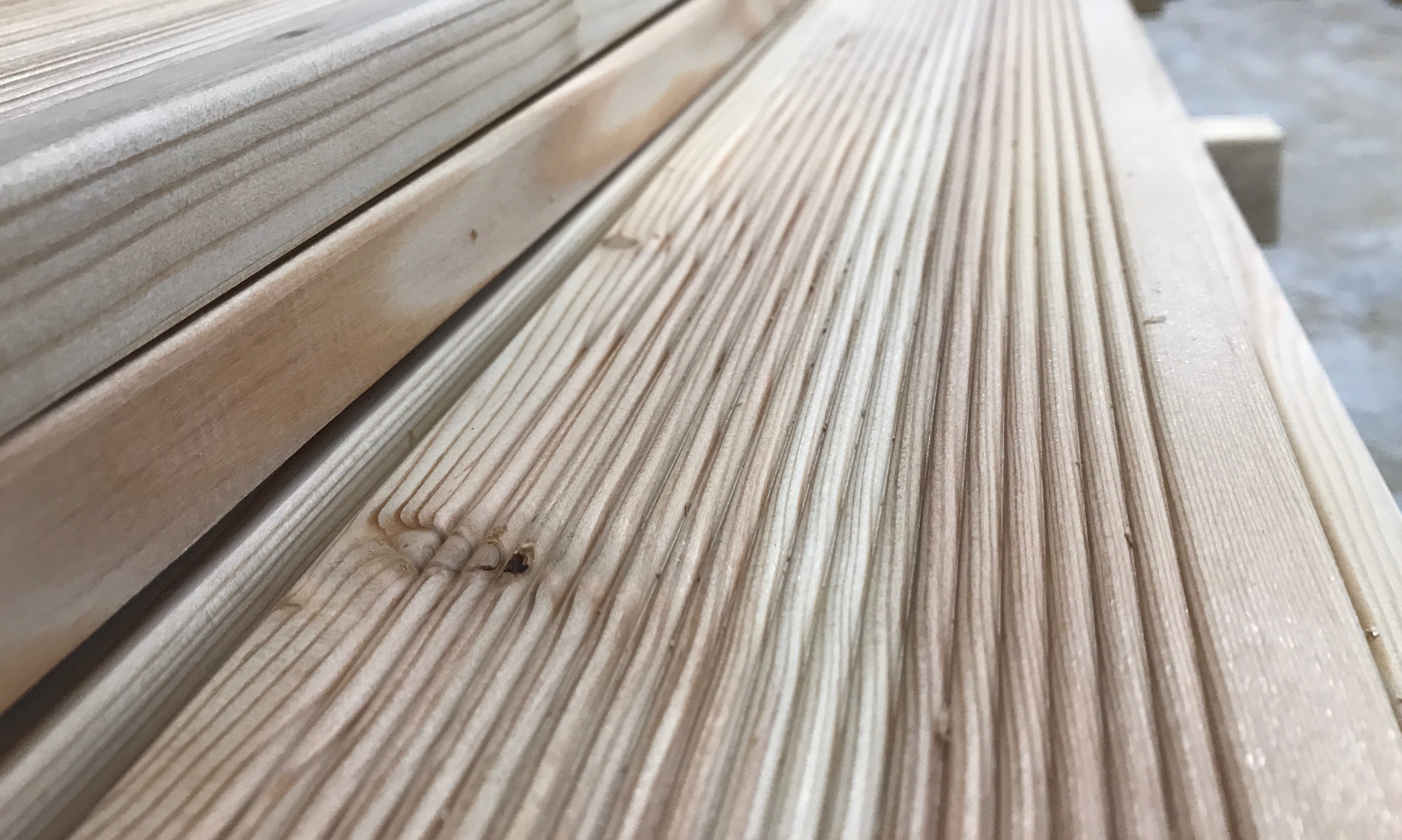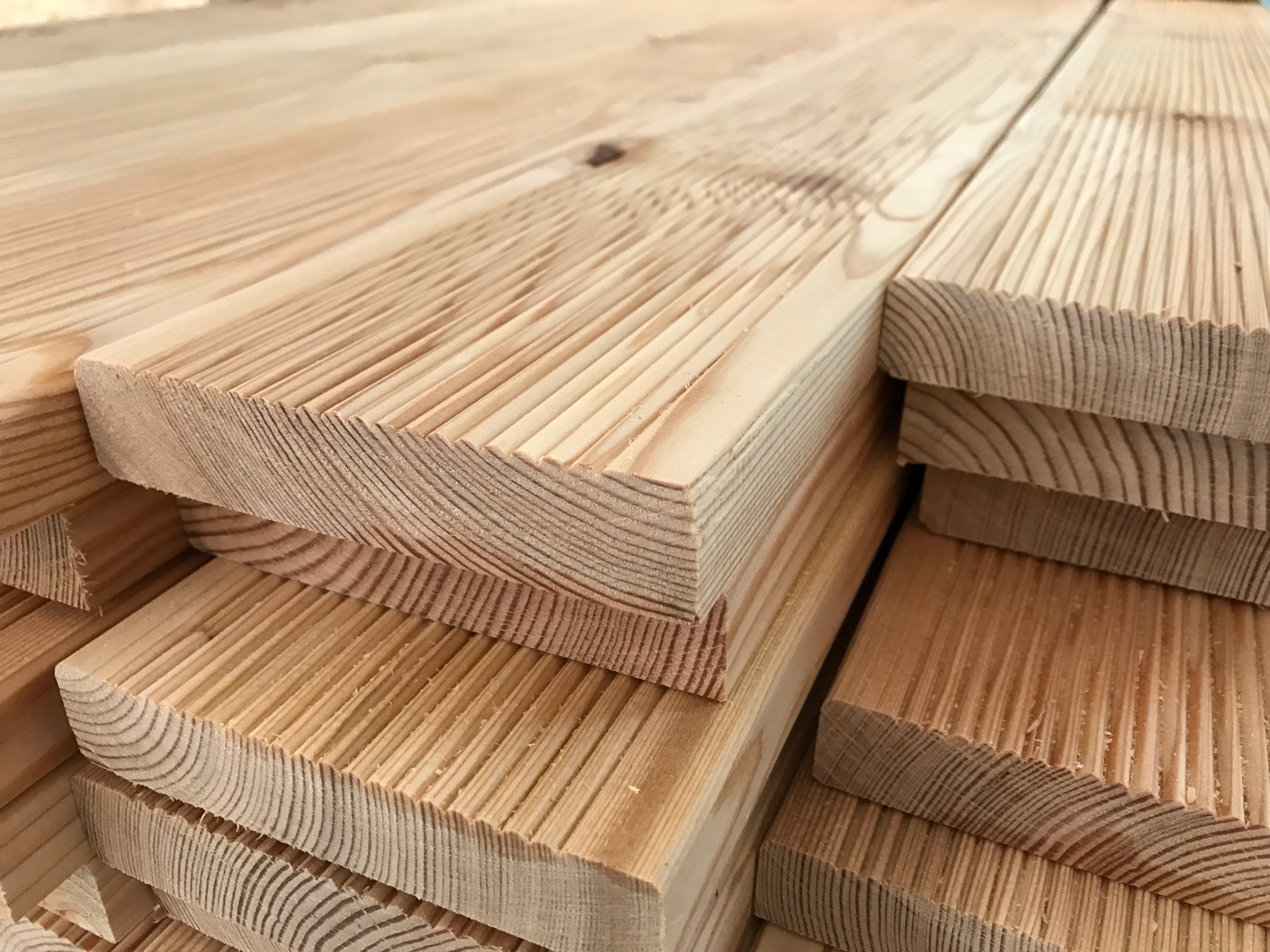 Rebrane podnice za leseno teraso izdelane iz sibirskega macesna. Kvaliteta macesnovih podnic je ABC. Les je zračno suh z vlažnostjo 14 – 17 %. Zgornja stran je narebrana s pobranimi stranskimi robovi, spodnja in stranske strani so gladke.